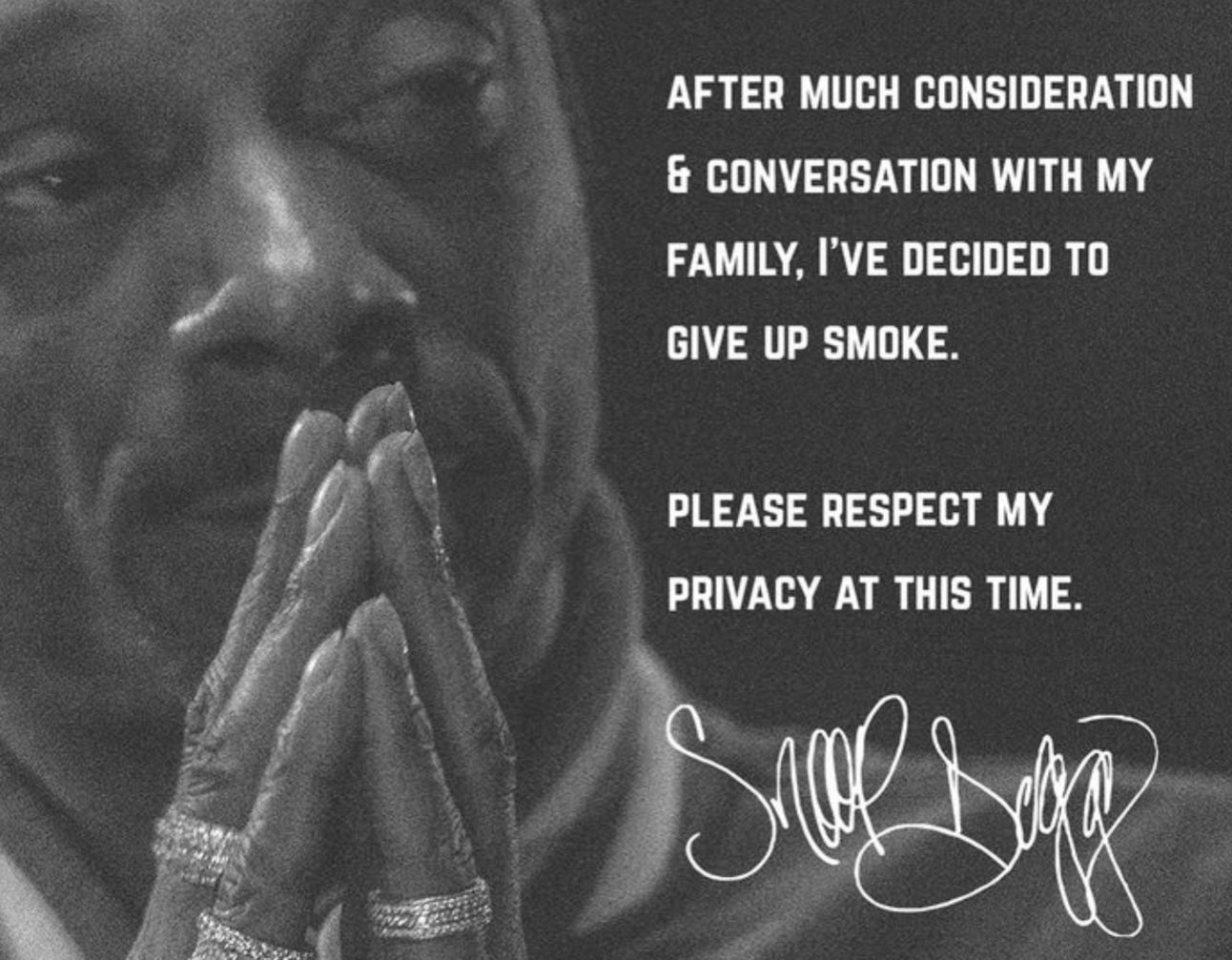 Wait, what? Last week, Snoop Dogg posted on Instagram (to his 82.8 million followers) that he was giving up smoke. This obviously sent shockwaves through an industry that views Snoop as a patron saint.
