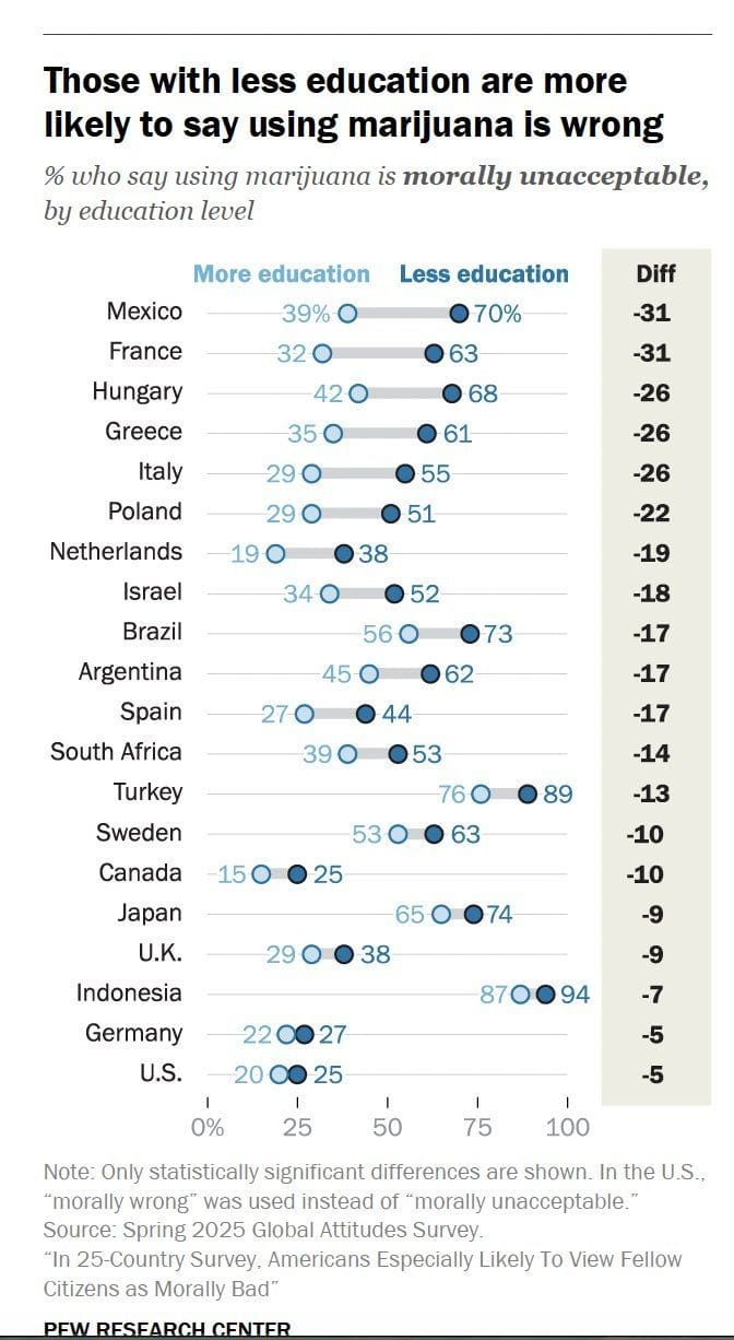 Here's some interesting data from Pew about how different countries around the world view cannabis.