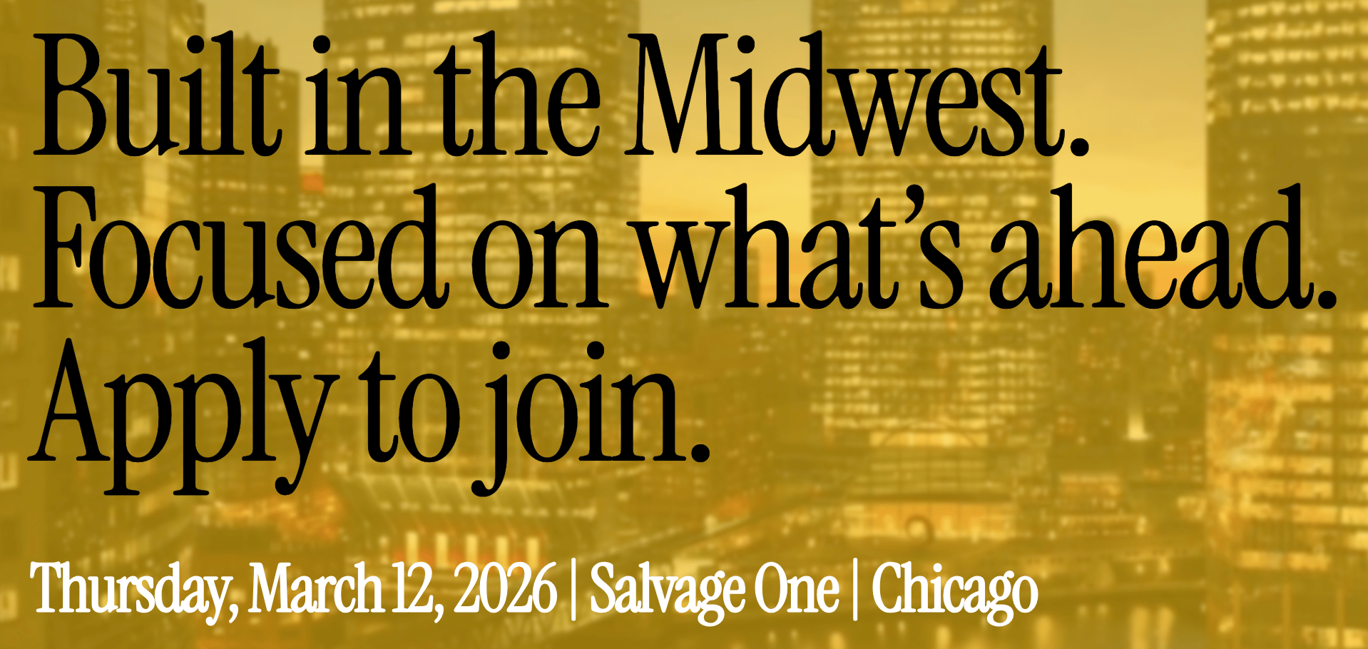 Event details: Salvage One, Chicago Wednesday, March 12. Application-only attendance