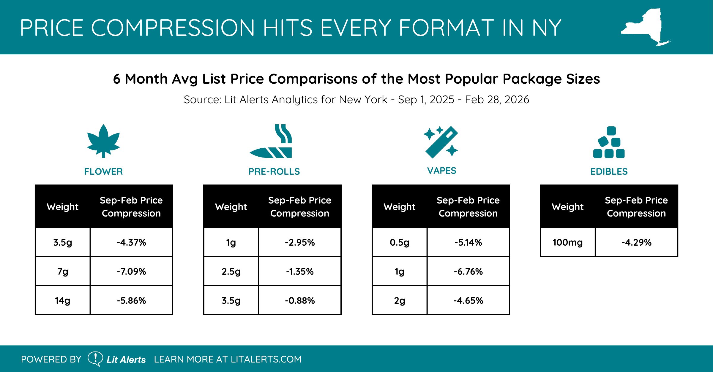 As part of our Empire State Pivot webinar series, the team at Lit Alerts team conducted a six-month analysis of average menu listing prices for the most popular package sizes.